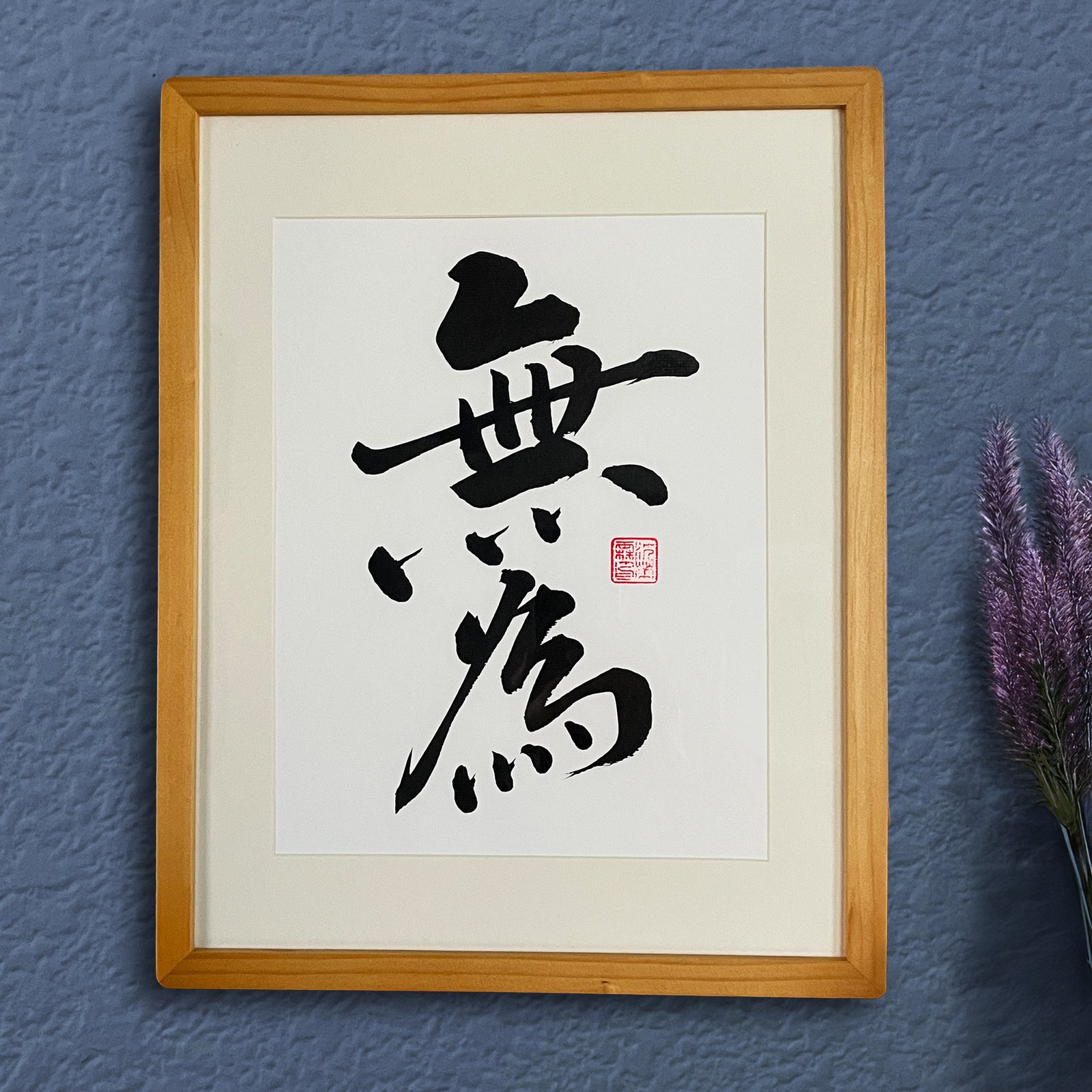 書道 “Mui” Japanese Shodo, Zen philosophy Art, “To do nothing” Chinese Calligraphy 書法, Framed Handwritten Art, Personalized Calligraphy Gifts, The Frame is included.